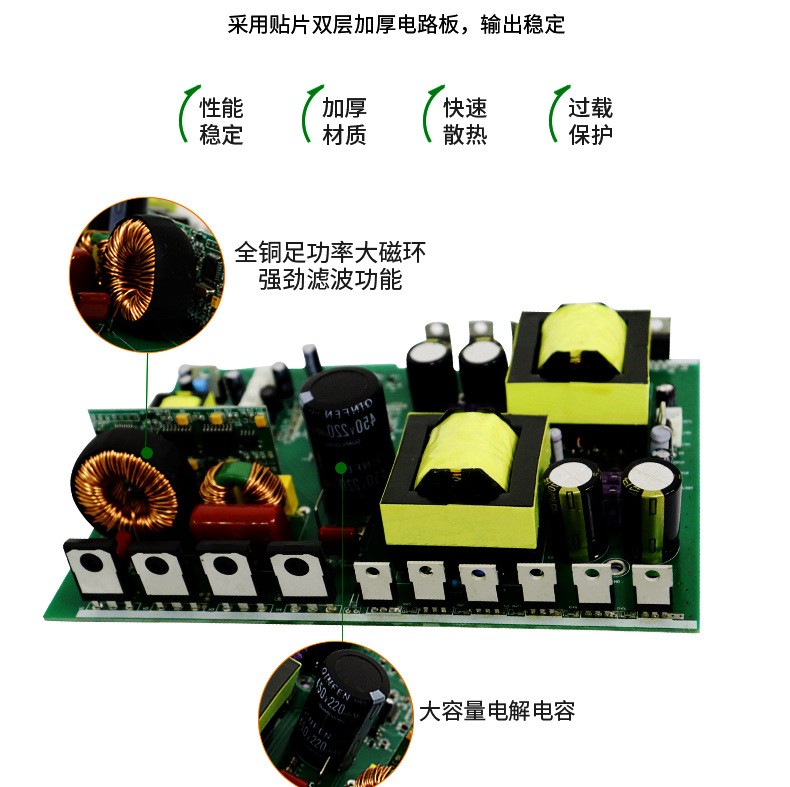 1、采用進口元器件制造,先進的電路設計,使得逆變器的轉換效率高,現代化流水生產保證了產品質量;